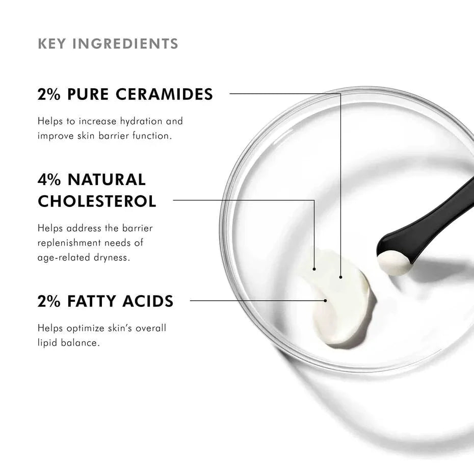 La fórmula contiene un equilibrio óptimo de 2% ceramidas, 4% colesterol y 2% ácidos grasos esenciales que juntos mejoran el volumen, elasticidad y textura de la piel. La piel queda más suave, lisa e hidratada mientras se reducen las líneas finas y arrugas.